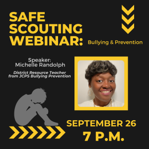 The safety of your scout is the number one priority of the BSA. The BSA Youth Protection Guidelines and barriers to abuse are proven to keep young people safe in Scouting. Every Scout, parent, and volunteer, should be protected from bullying, harassment, improper touching and all other negative behaviors. No one should be threatened, harassed or abused, either verbally or physically in any way. Everyone in Scouting is expected to act in accordance with the Scout Oath & Law at all times. Read more about the Prevention of Bullying in Scouting . The Boy Scouts of America and the Lincoln Heritage Council want to assure that there is a safe and protected way to report any of the above negative activities where all involved are treated with dignity and in confidence to the level allowed by law. All Violations of the BSA youth Protection Guidelines should be reported to the Scout Executive, Jason Pierce, immediately at Jason.Pierce@Scouting.org. If you are being subjected to negative behaviors by anyone, please click let us know. We promise to take fast action to protect you and correct the behavior. Also, it is ok to report to us if you think this might be happening to a fellow Scout or Scouter. We will handle the report carefully with respect to everyone involved. View Additional Bullying Resources or our Bullying Prevention Guide.